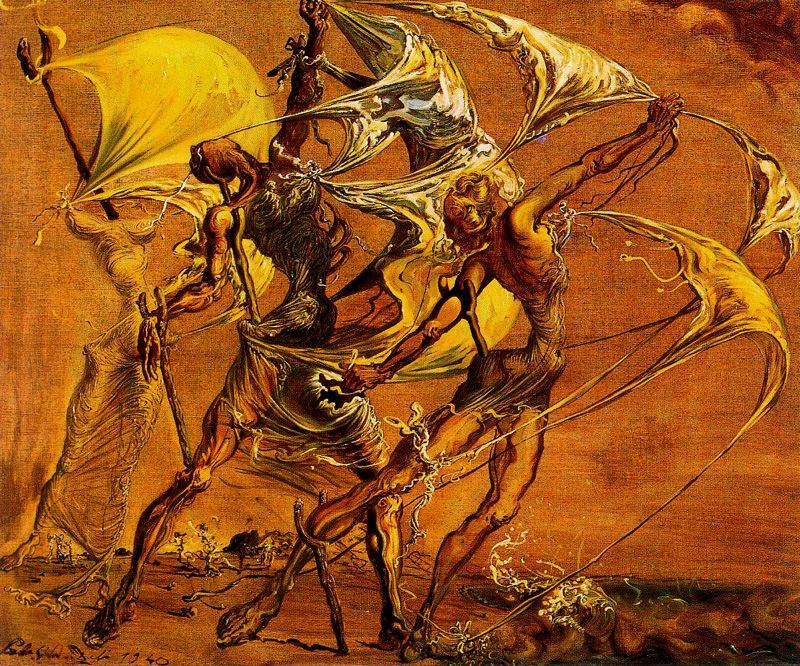Een groep vrouwen die de bewegingen van een schoener imiteert (Salvador Dali, 1940)
